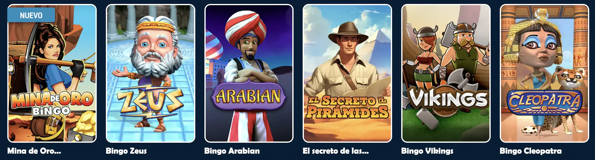 | Culturas | Bingo Arabian, Bingo Vikings, Bingo Marichis, etc. |